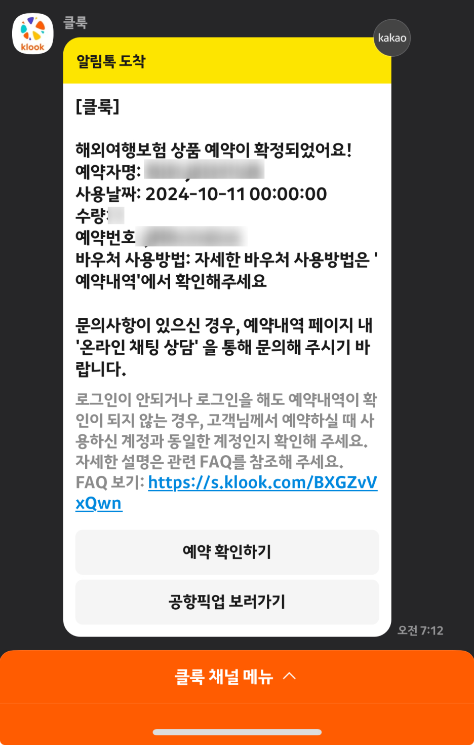 Step5. 예약내용을 확인한다. (카카오톡, 개인문자로 확인하기)