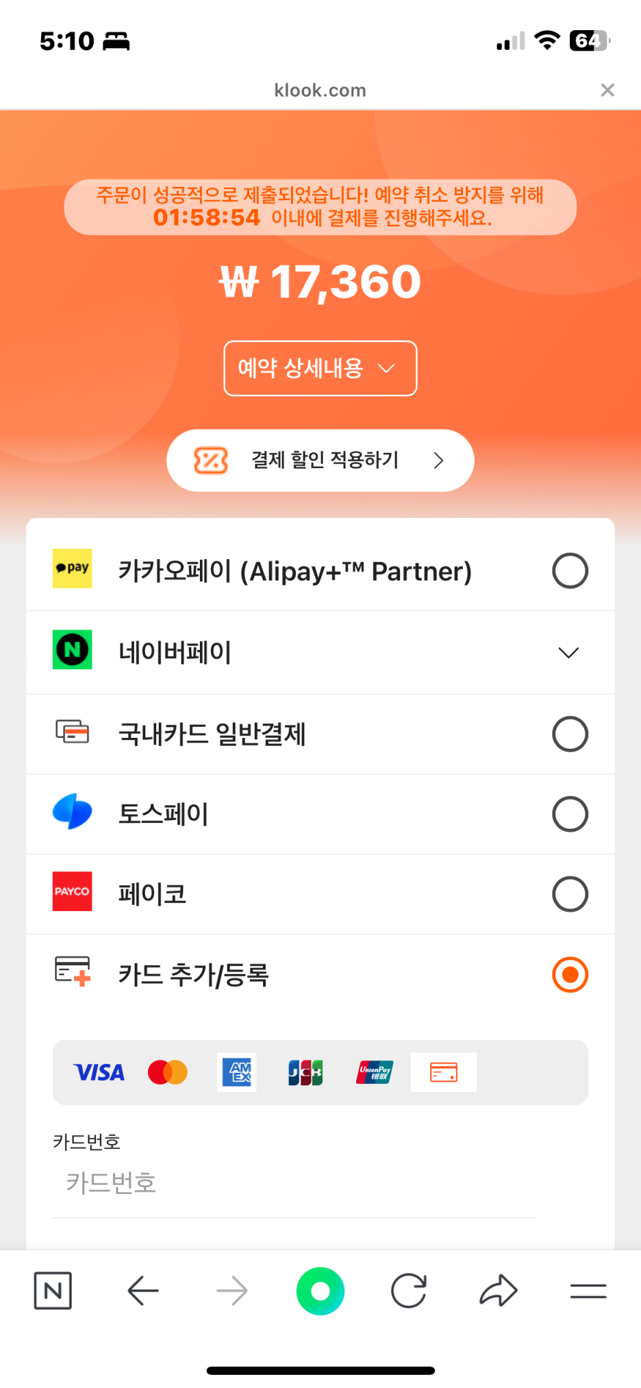 Step4. 결제금액을 확인하고 결제방법을 선택한다.
