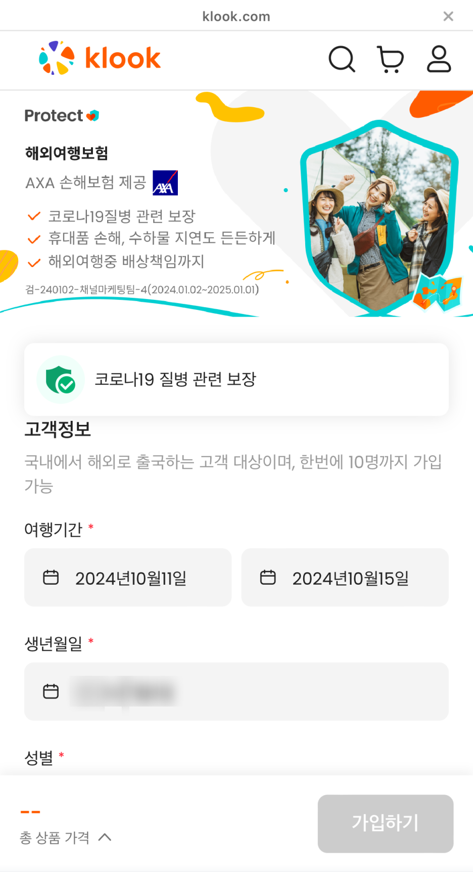 Step1. 여행보험 사이트에 접속한다.